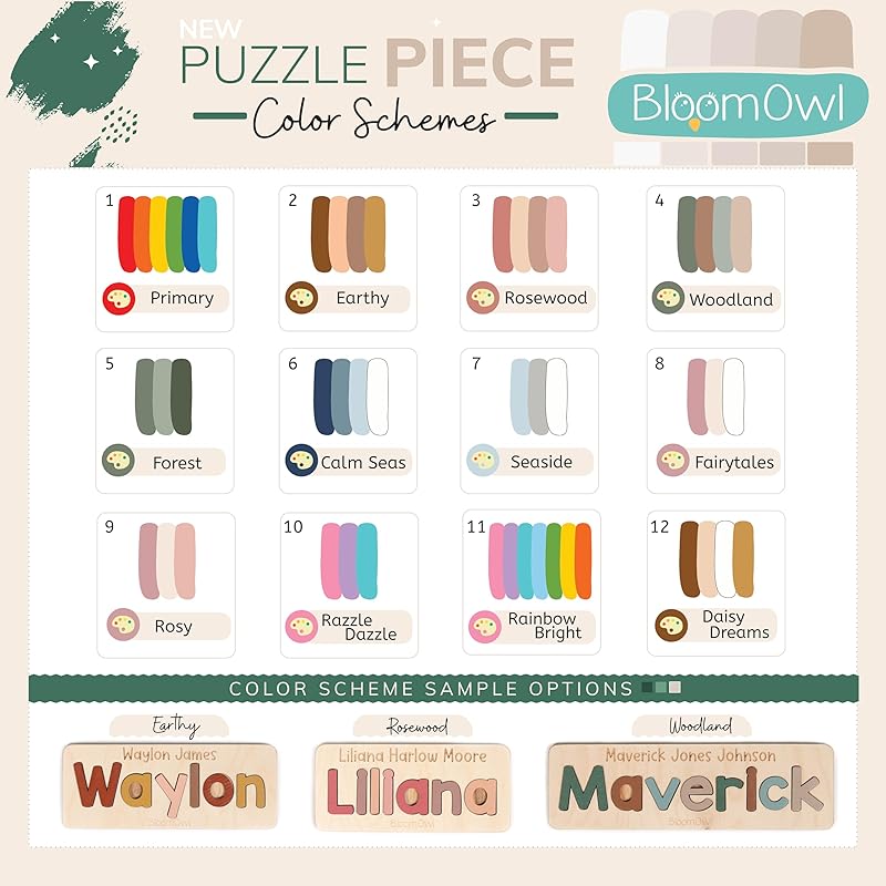 - Timeless Keepsake- Celebrate your child's milestones with a personalized name puzzle in your choice of colors that doubles as a charming piece of nursery decor or name signs for kids room.