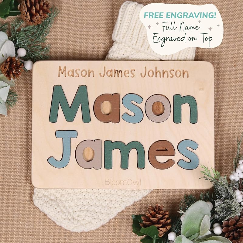 - Learning Toy- Our puzzles feature the child's full name engraved on the top, and Upper and Lowercase letters for the puzzle pieces. Learning can be fun with a name puzzle for kids personalized with the child's own name! Choose any combination of first, middle, and last name for the engraving.