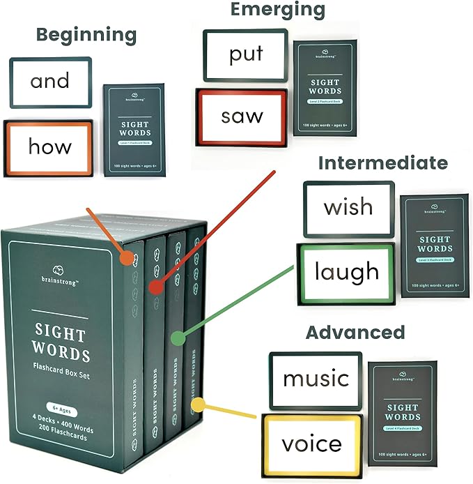 650 Phonics and Sight Words | Ages 5-8 | Boost Reading Ability | 250 Flashcards | Kindergarten 1st 2nd Grade | Beginning to Advanced Words | Brainstrong Premium 2 Box Set