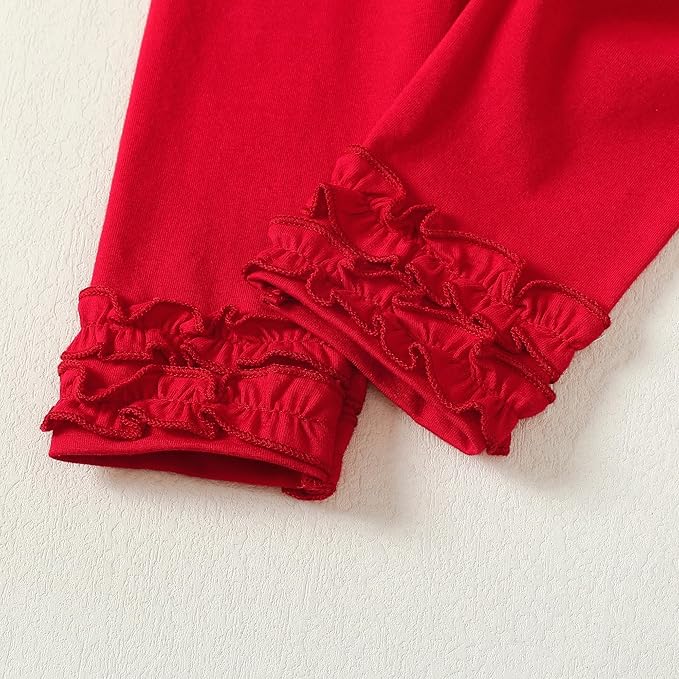 - Design: Red love heart ruffle long sleeve shirt, match with solid pants, simple yet cute