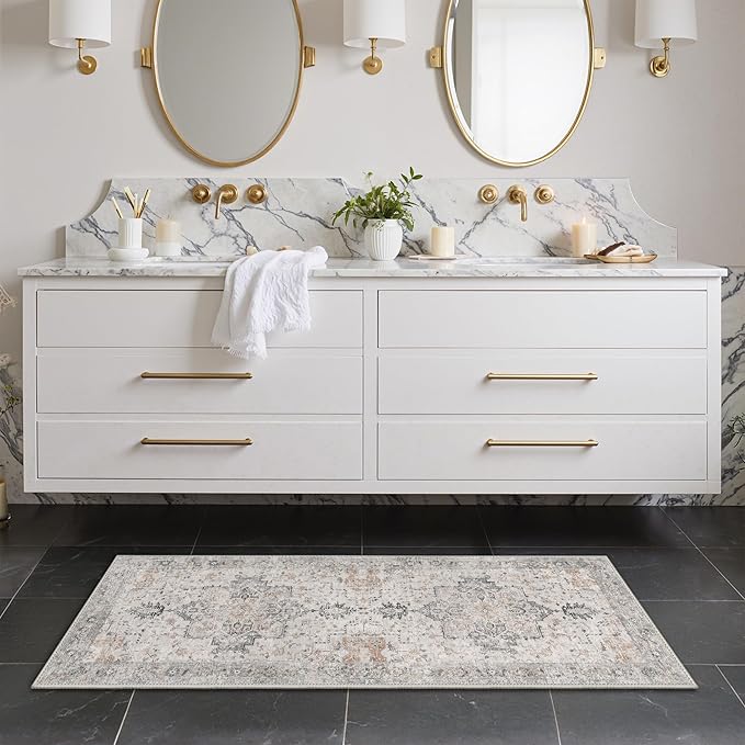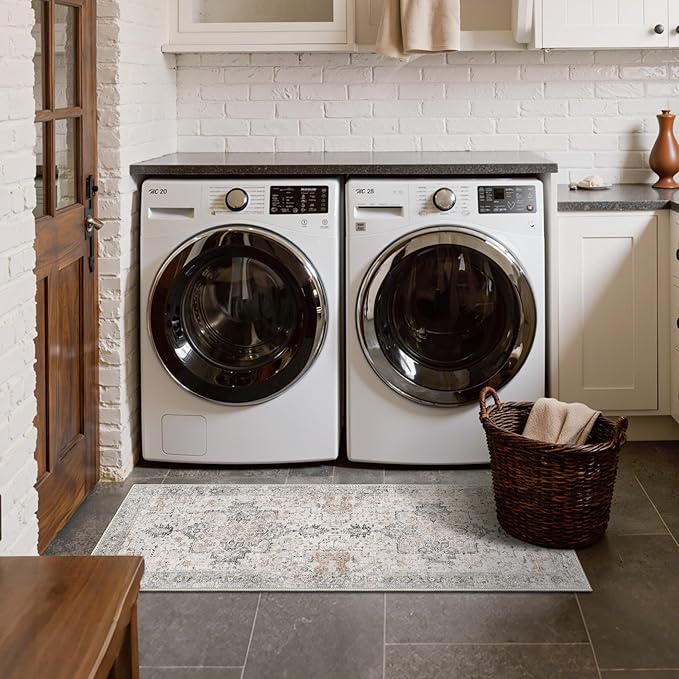 GENIMO Runner Rug 2x5 Non Slip Machine Washable Vintage Hallway Runner Rug, Low Pile Lightweight Rugs for Entryway, Hallway, Kitchen and Corridor, Light Taupe Brown