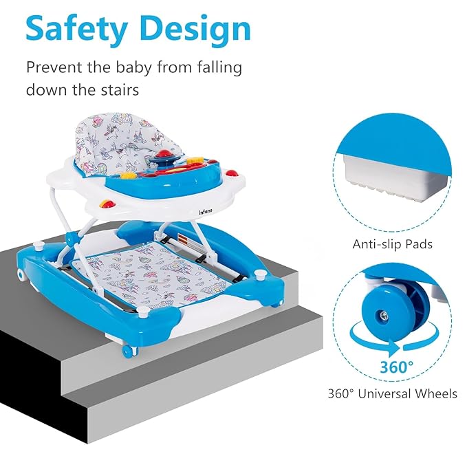 - 5 in 1 Baby Walker:INFANS baby walkers can be easily converted into bouncer and rocking chair, activity center, walk-behind walkers and rocking chair to meet the needs of babies at different stages and accompany their growth
