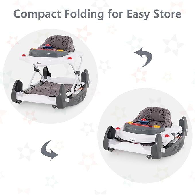 - 5 in 1 Baby Walker:INFANS baby walkers can be easily converted into bouncer and rocking chair, activity center, walk-behind walkers and rocking chair to meet the needs of babies at different stages and accompany their growth