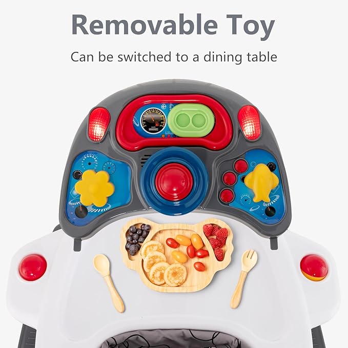- Fun Activity Center: The toddler activity center comes with a detachable music playboard that provides various ways for your baby to entertain and learn. Kids can be stimulated by listening to music and playing with interactive toys. Requires 3*AA batteries (not included).