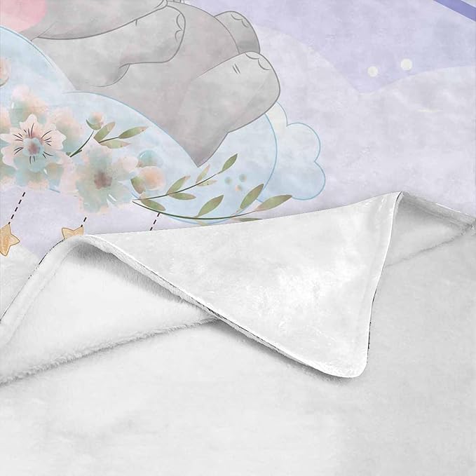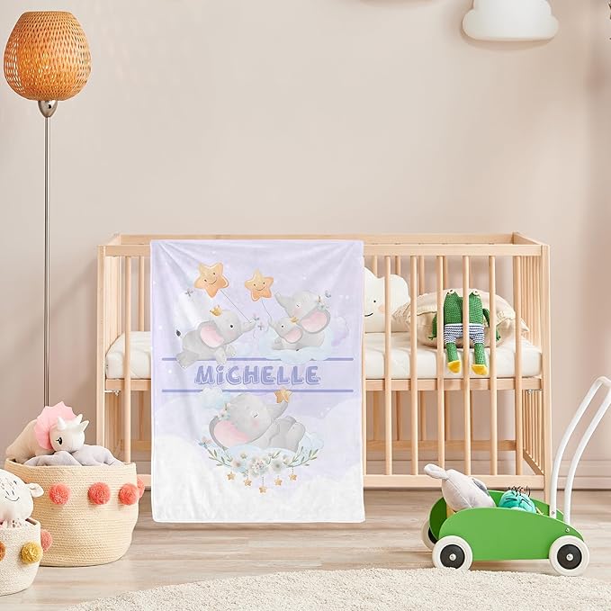 Personalized Baby Blanket with Name, Cute Custom Light Purple Elephant Name Blankets Toddler Girls Soft Flannne Swaddling Blankets Customized Memorial Gift from Nana for Infant Newborn Shower