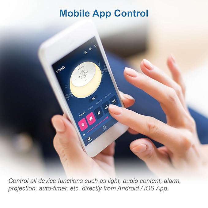 - [Sleep Training Scheduler & Sleep Tips Content from Experts] - VTech Soother app enables you to create sleep routine schedules which control the light, sound and projection features of soother to make your child understand and get habituated to sleeping routines. The app also provides tips from experts.