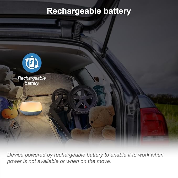 - [Portable and More] - Make the baby comfortable at any place by using this portable device to create the same environment setting as in the nursery. The 2600 mAh rechargeable battery helps you use it in home and outside without any wires when required.