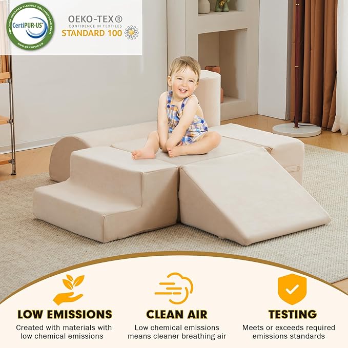 - 【SAFE AND GUARANTEED】: Jela kids foam climbing blocks are CertiPUR-US certified, non-toxic, environmentally friendly, and odorless fabric with OKEK-TEX approved. The soft play climbing for toddlers with hidden zippers are designed to avoid scratching children's soft skin. We focus on offering kids a reassuring environment to play, the product is built without hard structure or smooth edges, to prevent kids from bumping.