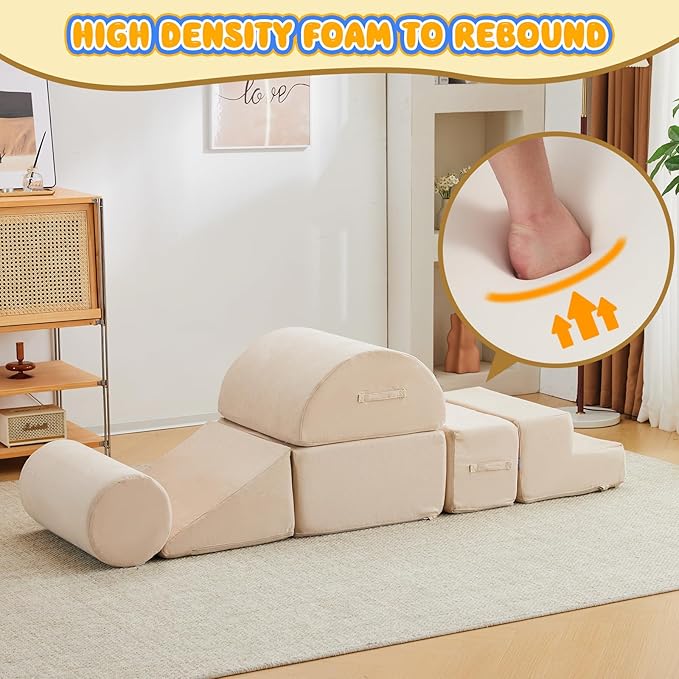 - 【HIGH DENSITY FOAM SUPPORT】: 28D high density foam with excellent bounce and support for long-year use instead of usual hard cheap foam in market which can not bounce back called disposable foam.They are more suitable for kids to climb, crawl, glide and play blocks. Our parents can be more assured that their child can wildly have fun on this toddler foam climbing blocks.