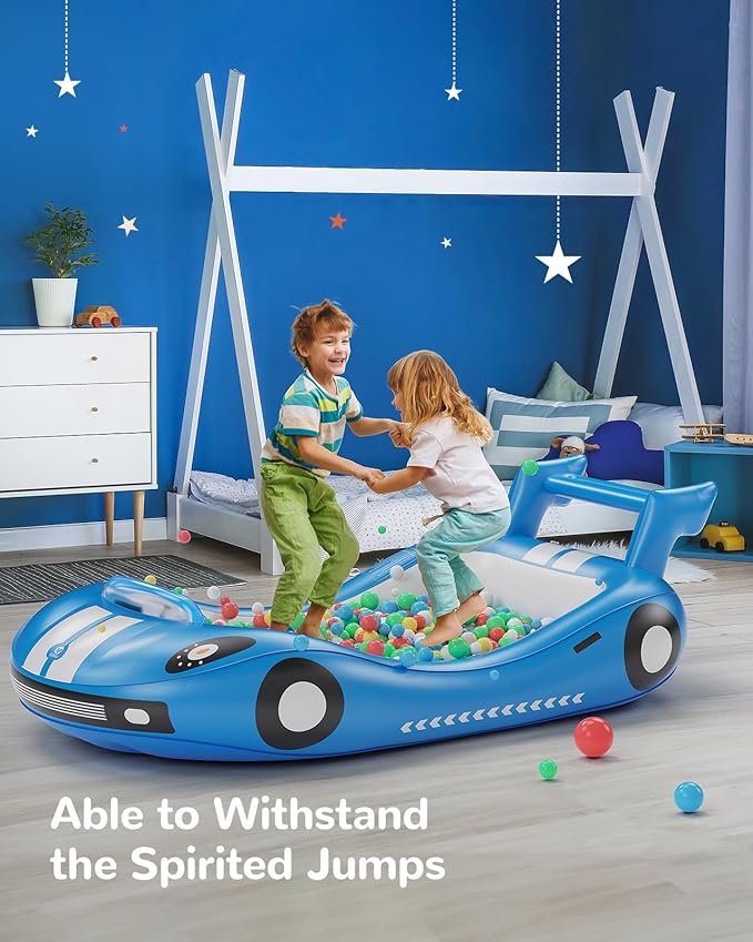 - Exciting Racing Car Design: Unlike regular kids travel beds, this air mattress with sides gives kids a chic bed experience with its racing car shape, adding a unique decorative element to the room. The cool racing car appearance, complete with vibrant printing details, as if you are in a real racing car is a surprise gift for little car fans.