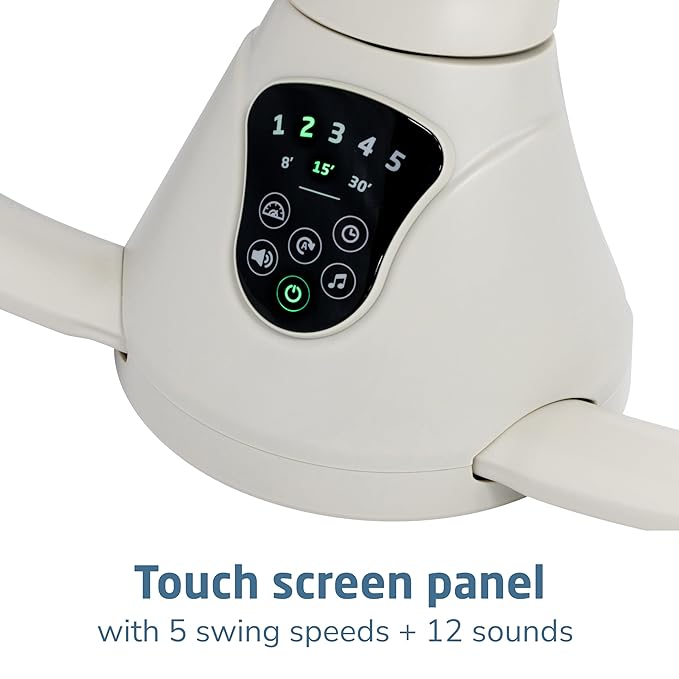 - SET THE MOOD WITH THE TIP OF YOUR FINGER: Easily customize the compact baby swing's settings with the smart built-in touch screen panel, selecting from 5 swing speeds and 12 melodies and nature sounds.