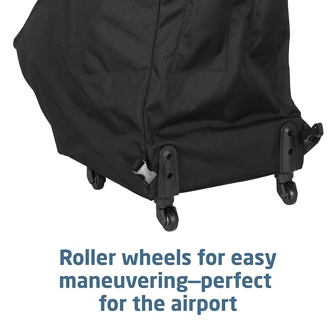 - ROLLER WHEELS FOR EASY MANEUVERING Navigating through the airport with your child’s car seat is easier than ever with the convenient roller wheels.