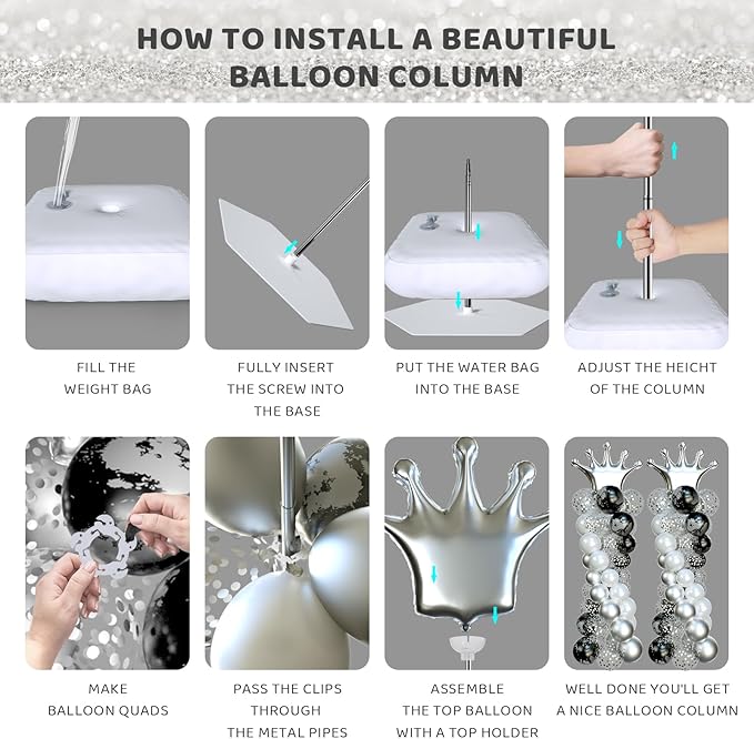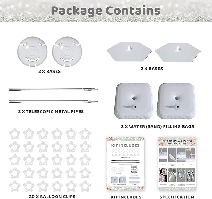- [Balloon arch kit]- Unlike other balloon column that requires stacking the clear plastic or PVC poles one by one, our balloon column has no complicated fittings and multiple splicing steps