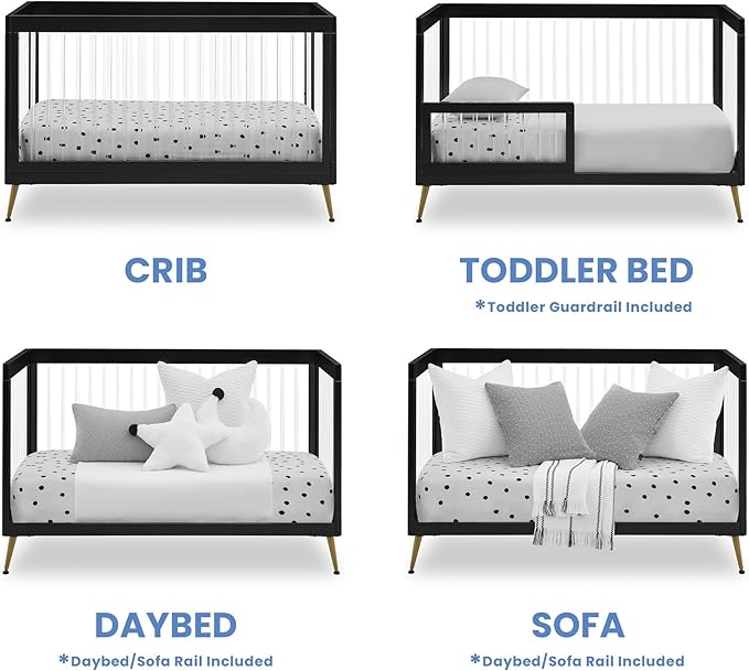 Delta Children Sloane 4-in-1 Acrylic Convertible Crib - Greenguard Gold Certified, Black/Bronze