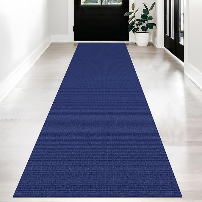 KOZYFLY Long Runners for Hallways 2.6x12 ft Washable Kitchen Runner Non Slip Rubber Backed Hallway Rugs Cotton Entryway Runner Rug Floor Carpet for Indoor Hall, Backdoor, Kitchen, Royal Blue/Navy