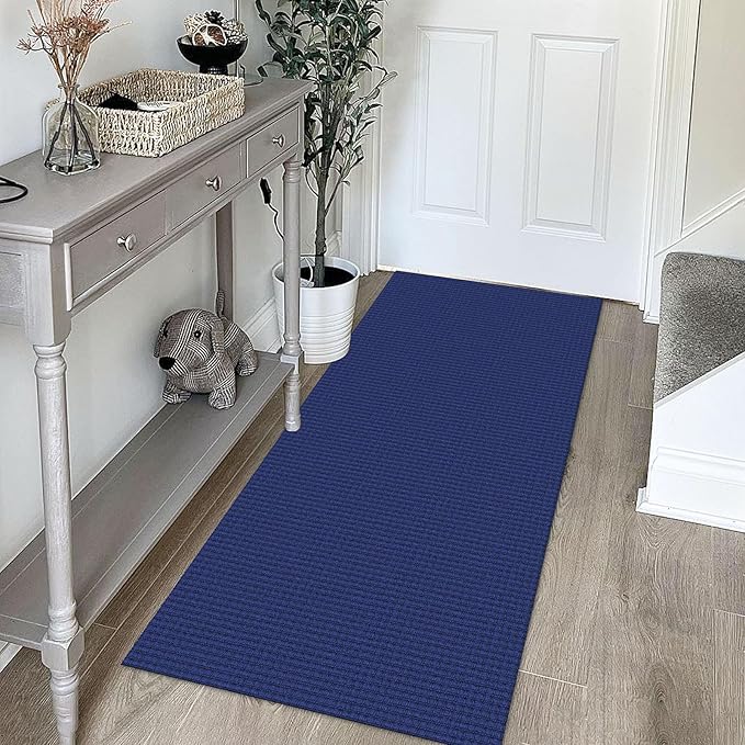 KOZYFLY Runners for Hallways 2x5 ft Washable Kitchen Runner Non Slip Rubber Backed Hall Runners Cotton Entryway Runner Rugs Floor Carpet for Indoor Backdoor Bedroom Kitchen, Royal Blue/Navy