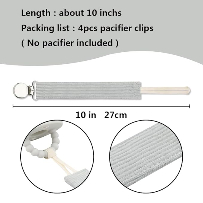 - Pacifier Clip for Girls: cotton pacifier clip package! Include 4different colors, you can match the appropriate braided pacifier clip according to the style of the your baby's clothes. Perfect gift for a newborn and works with almost all unisex pacifier.