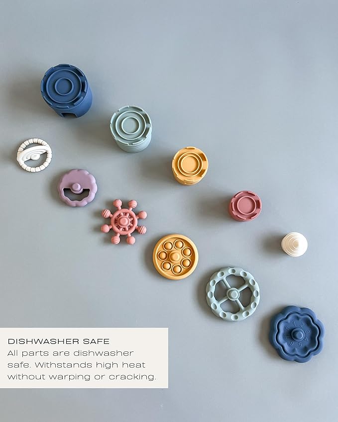 - ✔️ NON TOXIC FOOD-GRADE SILICONE: As one of the leading brands for silicone products for the past 7 years, quality has always been our first priority. Made from 100% pure food-grade silicone with NO added fillers, plastics or harmful chemicals, our silicone stacking toys are always free from BPA, BPS, PVC, lead & phthalates.