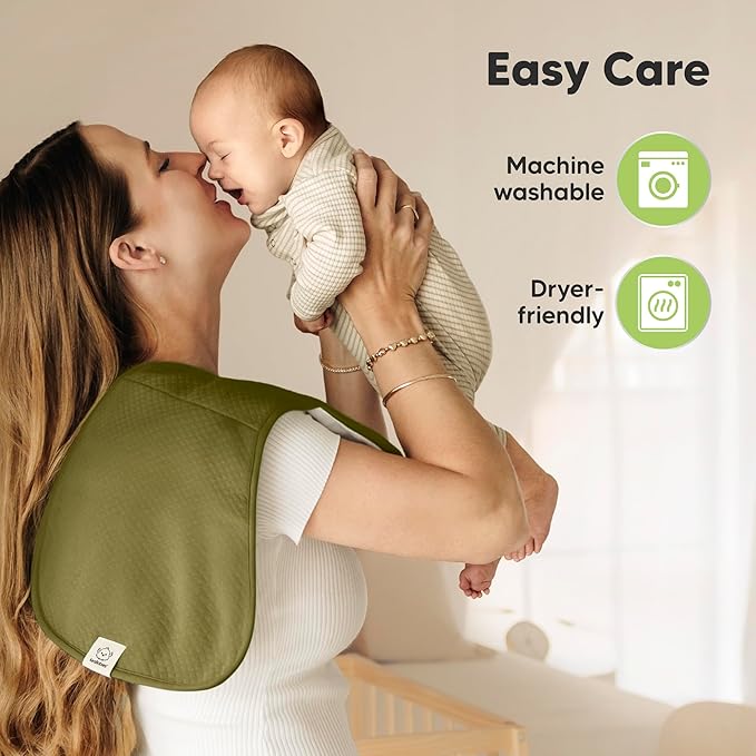 - Ergonomic Comfort - Snuggle up with these versatile organic burping cloths for babies, featuring a smart figure-8 design that stays snug on your shoulders. Lightweight and broad-coverage, they effortlessly guard your clothes against sneaky spit-ups.