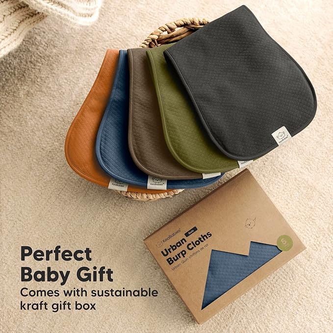 - Thoughtful Gift - Each pack of 5 burp cloths comes beautifully packaged in a kraft gift box. Pair the Urban Quin Burp Cloths with matching Quin Bibs—perfect for any baby registry. Both are machine washable and dryer-friendly, ideal for busy parents.
