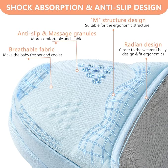 - Ergonomic Design for Baby’s Comfort: Non-slip, shock-absorbing hip seat maintains baby’s hips in an ergonomic "M" position; a 30-degree angled seat brings the baby closer to the parent, ensuring a secure and comfortable carry