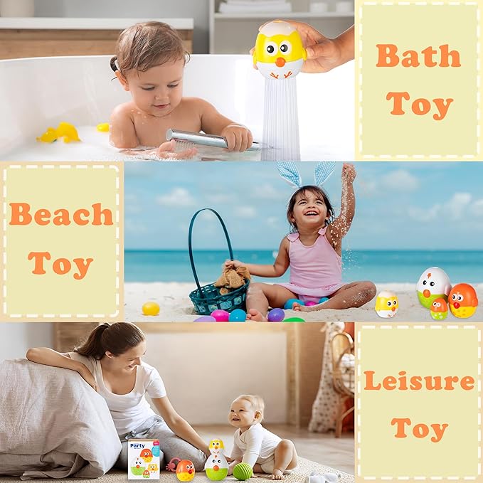 - 【Durable & Safe】 Our toy eggs are made of durable non-toxic ABS plastic, No battery needed energy-saving and environmentally friendly. Even your child likes to put it in mouth is safe. The burr-free polished smooth edges will not hurt your baby’s soft skin. Good size and easy for their hands to grip.