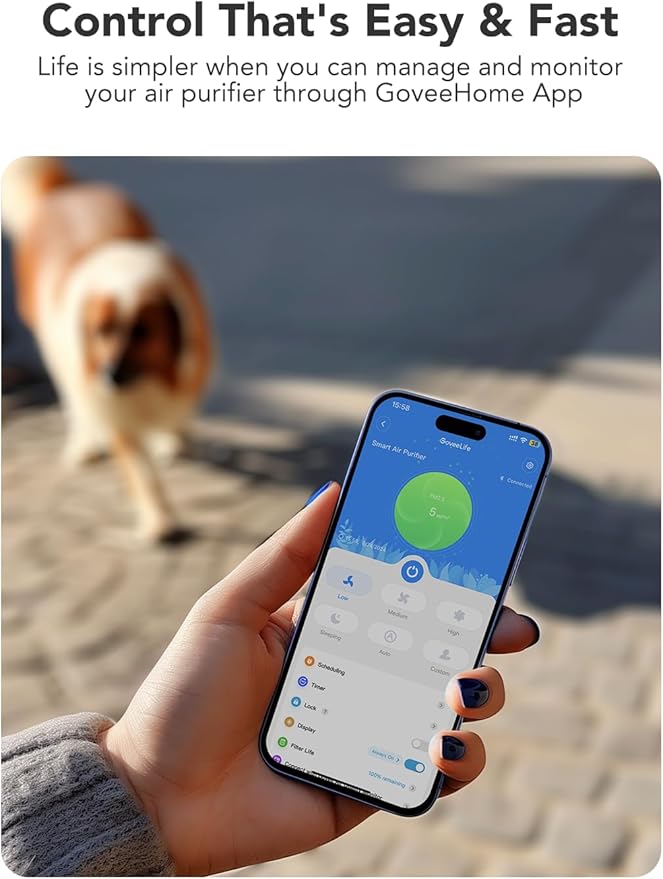 - Smart Voice & App Control: Supports WiFi or Bluetooth connection, so you can control the air purifier from anywhere via App. Use your voice to activate pure air with Alexa, Siri, Google Assistant and IFTTT.Replacement filters can be purchased on Amazon by searching " B0CR171HMC".