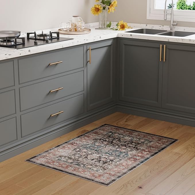 Dripex Vintage Washable Rug 2x3 Indoor Door Mat Non-Slip Bathroom Mat Distressed Low-Pile Small Rug for Front Entrance Kitchen Living Room Bedroom
