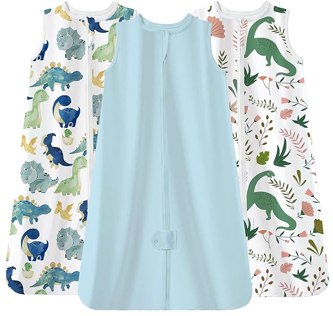 TotAha Dino Sleep Sack 0-6 months 3 Pack, Buttery Soft, Safe Wearable Blanket Baby Sleeping Bag with 2-way Zipper for Girl Boy, 0.5 TOG