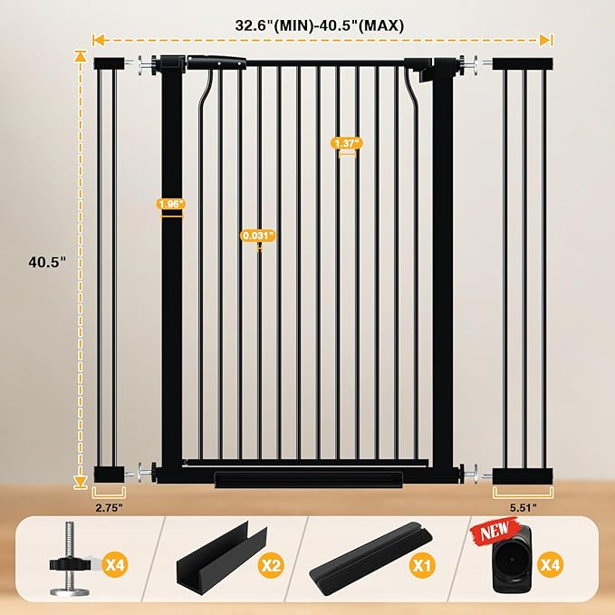 - 【EXTRA TALL DESIGN】Standing 40.5" tall (103cm), it’s ideal for blocking large dogs and curious toddlers. Adjustable width from 29.5" to 79.5" (75-202cm) fits stairs, doorways, and wide openings—perfect for multi-use as a baby gate, pet barrier, or safety fence.