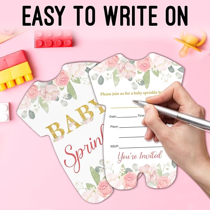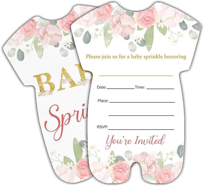 - Beautiful Design: Baby clothes-shaped card outline design. High quality double sided printing. With beautiful graphics and fun language, these invitation cards are a great choice for party supplies.