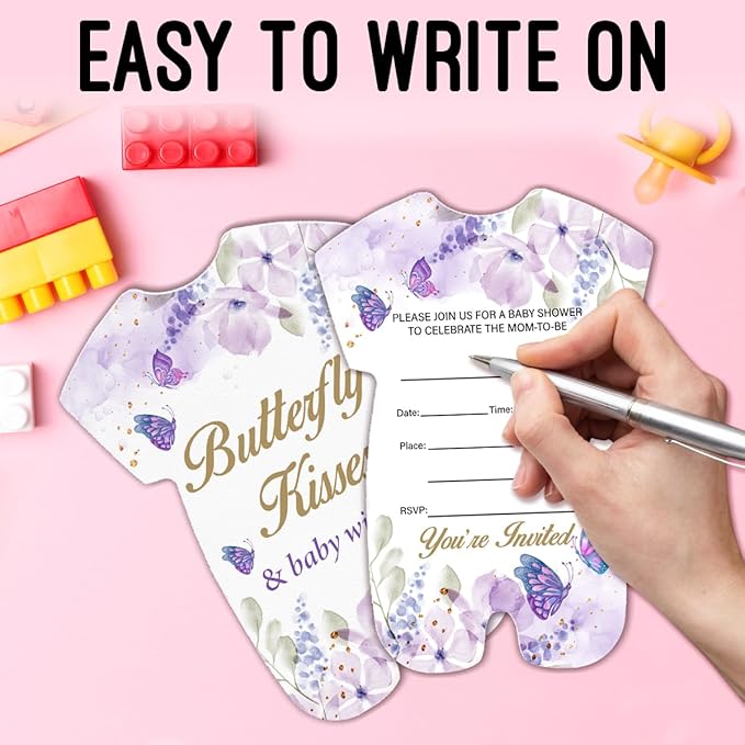 - Beautiful Design: Baby clothes-shaped card outline design. High quality double sided printing. With beautiful graphics and fun language, these invitation cards are a great choice for party supplies.