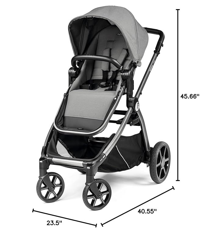 Peg Perego Ypsi – Compact Single to Double Stroller – Compatible with All Primo Viaggio Infant Car Seats & Ypsi Bassinets - Made in Italy - Mercury (Grey)