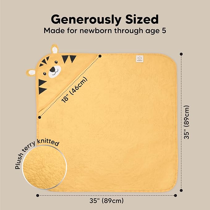 - Large and Durable Hooded Baby Bath Towels β Measuring 35" x 35", KeaBabies Hooded Baby Towels for newborn are built to be long-lasting even with repeated washes. The soft baby hooded towel can be use as your newborn grows into a toddler and up to age 5.