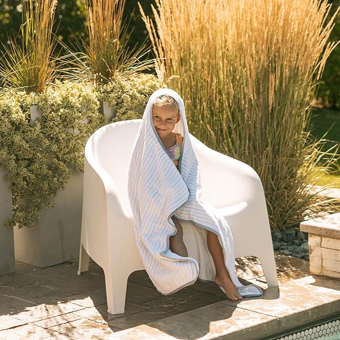 Little Unicorn Premium Hooded Bath Towel| Absorbent Cotton & Terry Blend | Larger Size, 1-6 Years (Unicorn Stripe)
