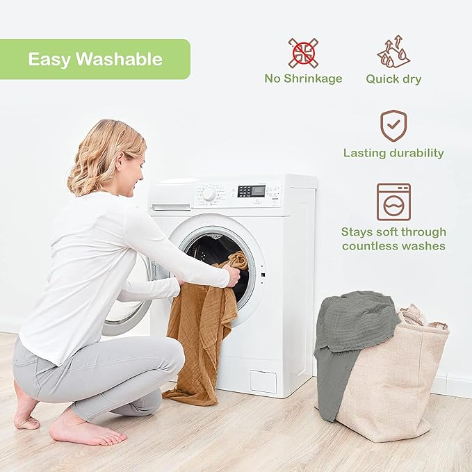 - ๐๐ฎ๐๐ ๐๐ฎ๐ฟ๐ฒ ๐ฎ๐ป๐ฑ ๐๐๐ฟ๐ฎ๐ฏ๐น๐ฒ: The cotton muslin blanket swaddle is machine washable, maintaining softness and shape. This muslin twin blanket is not only durable but also ideal for everyday use, making it a practical choice for busy parents.
