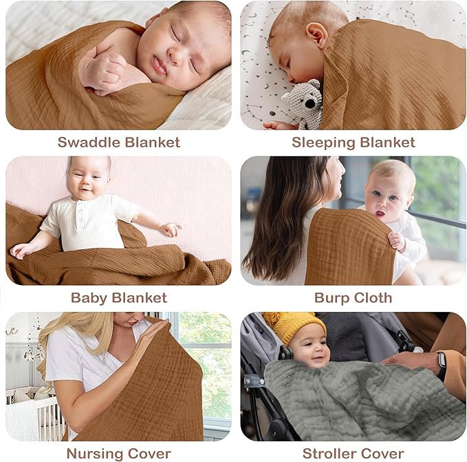 - ๐ฉ๐ฒ๐ฟ๐๐ฎ๐๐ถ๐น๐ฒ ๐ก๐๐ฟ๐๐ฒ๐ฟ๐ ๐๐๐๐ฒ๐ป๐๐ถ๐ฎ๐น: Our muslin swaddle blankets serve as baby girl blankets, nursing cover, or stroller shade, making them perfect for feeding, walks, and more. Packaged beautifully, theyโre baby registry must haves and ideal baby shower gifts.