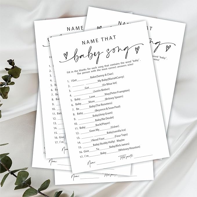 Name That Baby Song - Baby Shower Game Set - Minimalism Ivory - 30 Double-Sided Fill In Style Game Cards With Answer Cards, Gender Reveal, Baby Announcement, Party Favor & Supplies - B05
