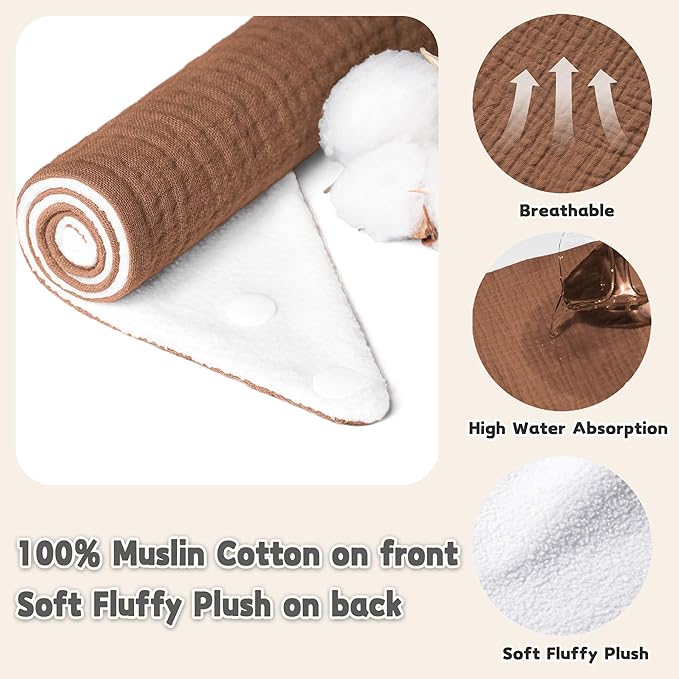 - Soft & Superior Absorbency: Our Susurration Muslin Baby Drool Bibs are crafted from 100% cotton muslin on the front, they are backed with water-resistant soft plush to ensure maximum absorption with a skin-friendly, gentle touch for your baby's skin. The dual-layered design ensures both you and your baby remain free from wet clothes all day long.