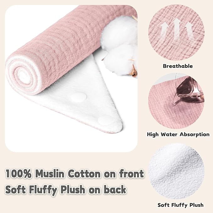 - Soft & Superior Absorbency: Our Susurration Muslin Baby Drool Bibs are crafted from 100% cotton muslin on the front, they are backed with water-resistant soft plush to ensure maximum absorption with a skin-friendly, gentle touch for your baby's skin. The dual-layered design ensures both you and your baby remain free from wet clothes all day long.
