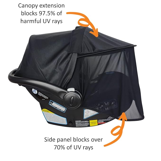 - [UV PROTECTION] The liuliuby Car Seat Sunshade Extension is perfect for outdoor and summer walks to protect baby from the sun. The top portion of the canopy blocks 97.5% of harmful UV rays and the detachable see though side panel blocks over 70% of UV rays.