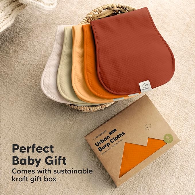 - Thoughtful Gift - Each pack of 5 burp cloths comes beautifully packaged in a kraft gift box. Pair the Urban Quin Burp Cloths with matching Quin Bibs—perfect for any baby registry. Both are machine washable and dryer-friendly, ideal for busy parents.