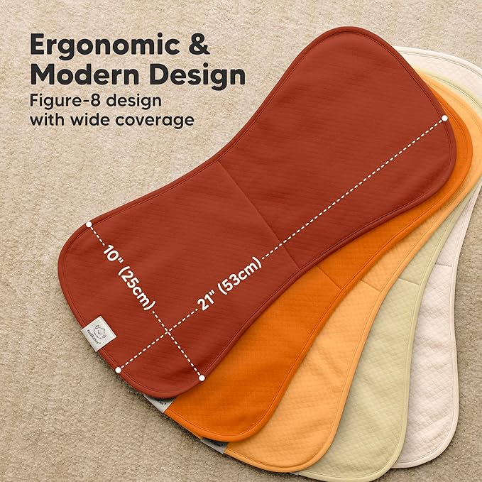 - Ergonomic Comfort - Snuggle up with these versatile organic burping cloths for babies, featuring a smart figure-8 design that stays snug on your shoulders. Lightweight and broad-coverage, they effortlessly guard your clothes against sneaky spit-ups.