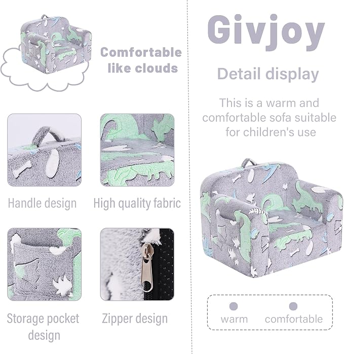 - 【Unique Present for Boys and Girls】The children's sofa couch is a wonderful present for all kids & toddlers on Birthdays, Christmas, or other occasions! Your child will find this small kids' couch to be the perfect spot for relaxing, reading, playing, or enjoying their favorite TV shows. Meanwhile, with both modern design and fashionable colors, this small couch can fit any room and add great vitality to your house.