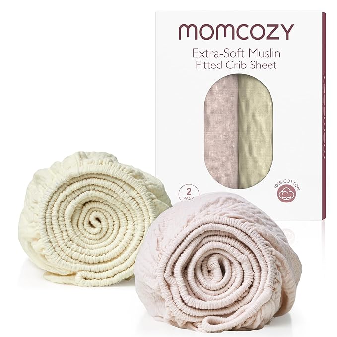 - 【100% Cotton, Quality and Softness All Around】Momcozy practical toddler ultra soft muslin fitted crib sheets are 100% made from quality American natural cotton, which is friendly for baby delicate skin. No weird odors or blurred designs, gentle and cushy cotton crib sheet provides a comfortable surface and a safe sleeping environment for babies helping soothe your newborn and keeping them calm when they are in sleep.
