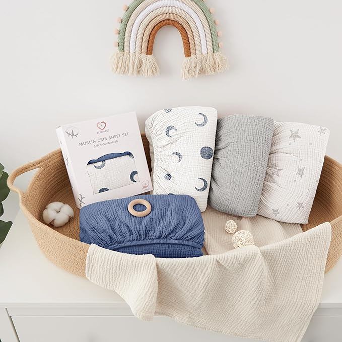 - COZY AND GENTLE - Crafted from 100% pure muslin cotton, our Bearmoss crib sheets boast an incredible softness that won't irritate your baby's sensitive skin. The lightweight and breathable fabric stays comfortably cool, even in the heat.
