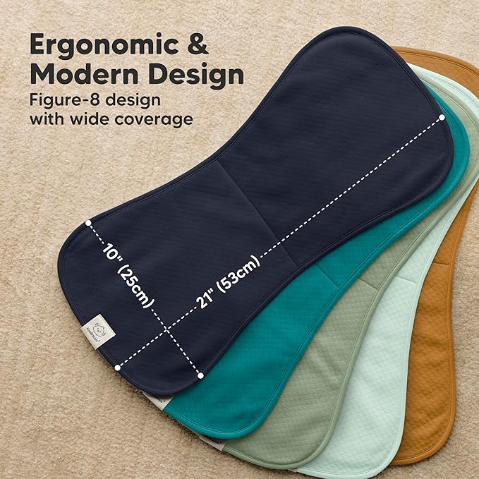 - Ergonomic Comfort - Snuggle up with these versatile organic burping cloths for babies, featuring a smart figure-8 design that stays snug on your shoulders. Lightweight and broad-coverage, they effortlessly guard your clothes against sneaky spit-ups.