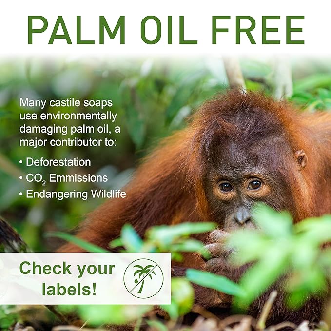 - ✅ NO PALM OIL: It’s a fact that most Castille Soaps are made with damaging Palm Oil. And while you feel fresh and clean, the damage to local wildlife, indigenous tribes, habitats, and our climate are less so. We use Organic Coconut, Olive, Castor, Jojoba, Argan and Hemp Oils. It’s eco-friendly goodness for your planet and your skin. Like you, we appreciate authenticity and natural goodness, and that’s why we don’t support Palm Oil, and it’s eco-damage in our Castile.