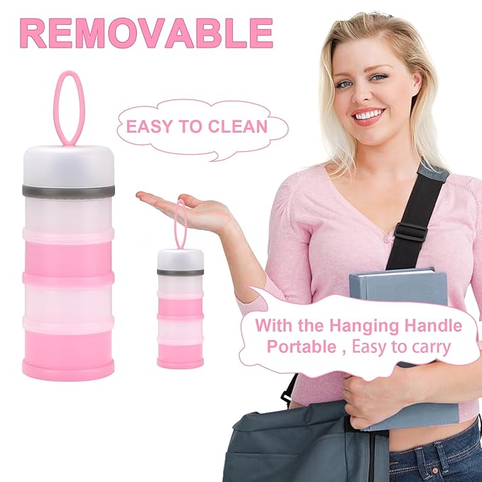 - Capacity - 4 layers design, you can put quantity of milk powder to be taken at one time in each layer box, you can carry 4 times of milk powder for baby outdoor need, very convenient and practical.