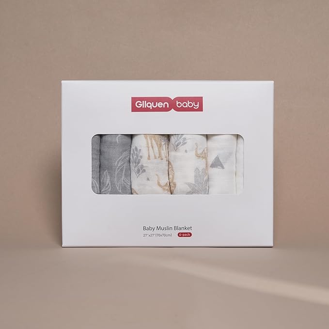 GLLQUEN BABY Receiving Blanket Boy Cotton Muslin Swaddle Blankets Girl Newborn Squares Breathable & Soft Thin Baby Blankets Cloths Double Absorbent Infant Swaddling Wrap - 6 Pack(Jungle)